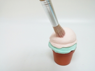 בעזרת מכחול בעל שערות קשות טופחים קלות על כדורי הגלידה כדי לשוות להם מרקם של גלידה