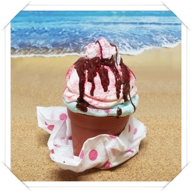 מצמידים את פרח הקצפת על ראש הגלידה